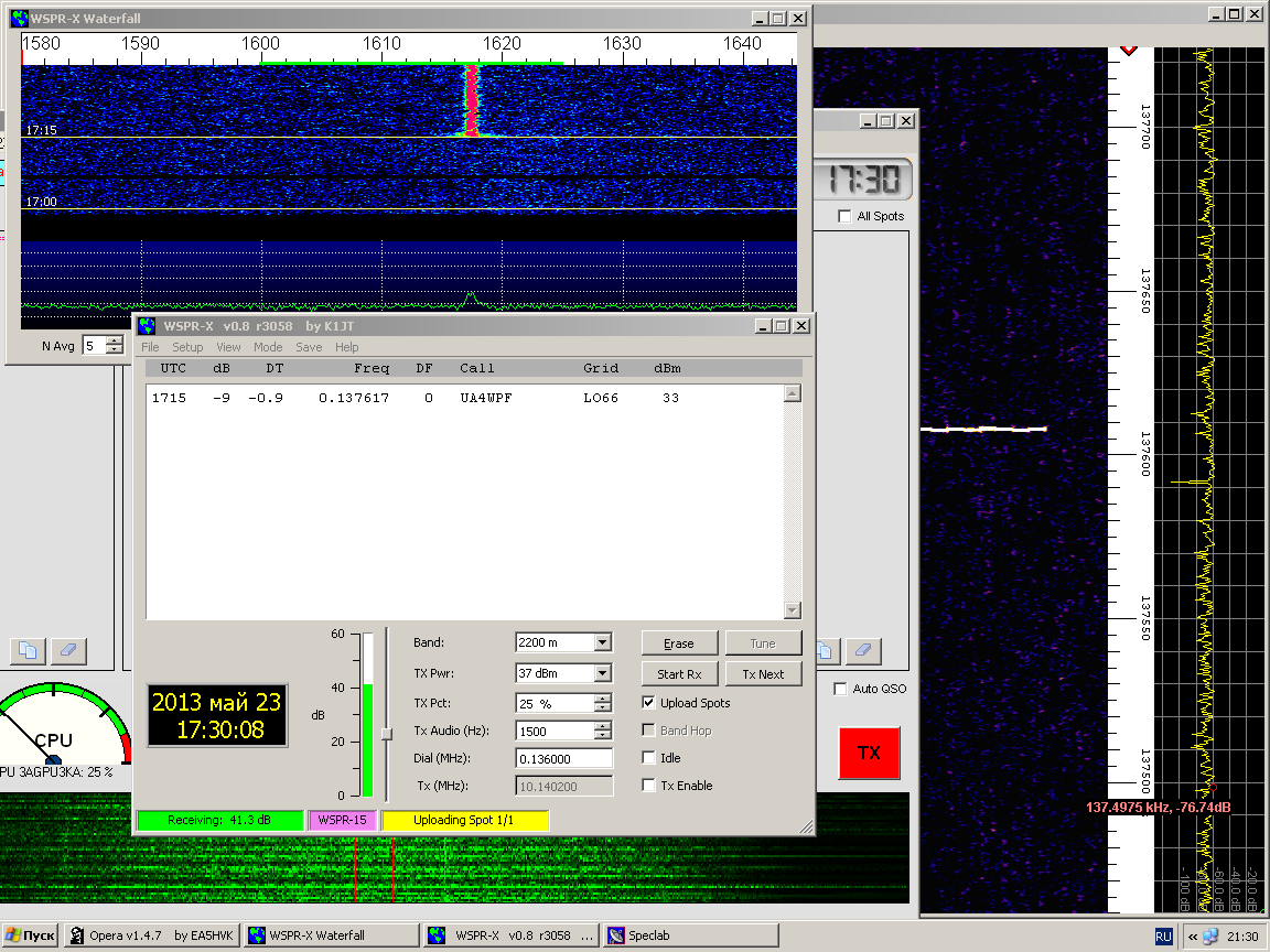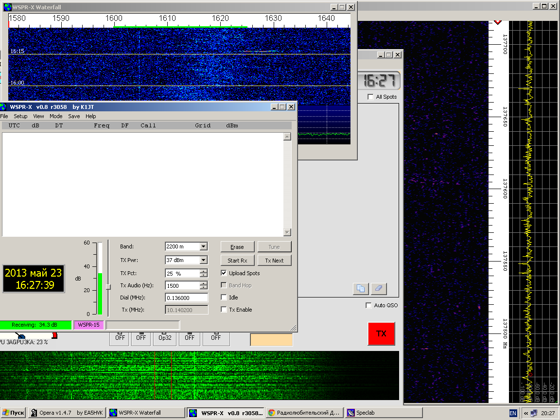 Видно ~30-ки на водопаде WSPR-X но декодов нет.