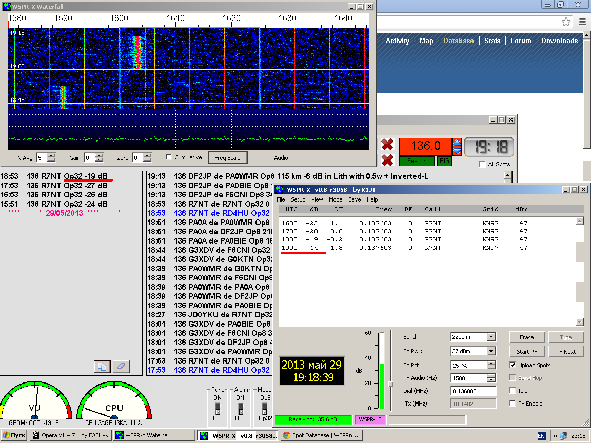 19:53 136 R7NT de UA4WPF Op32 1445 km -35 dB in IZHEVSK with 80w + EsLoop